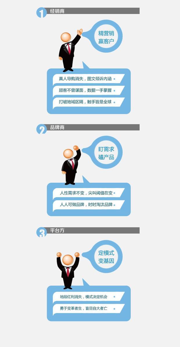 一般而言,如果品牌廠商在電商時代做直營成本依然過高,則還會借助經(jīng)銷商模式實(shí)現(xiàn)共贏共生。尤其是倚重配套服務(wù)的行業(yè)(例如家居家裝、大家電、餐飲等),遍布各地的中小經(jīng)銷商依然有生存空間。需要積極轉(zhuǎn)變思維,配合品牌商的電商時代戰(zhàn)略舉措,發(fā)揮自己的角色能量。